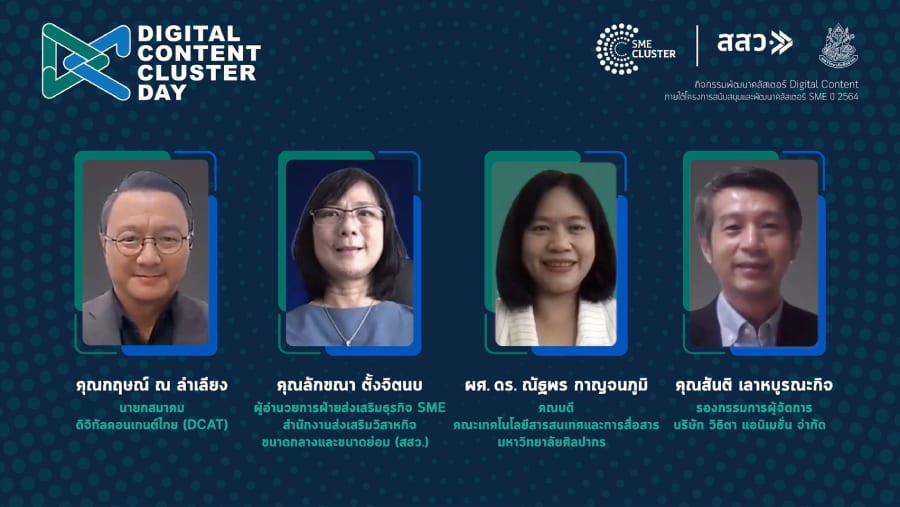 สำหรับการจัดกิจกรรมพัฒนาคลัสเตอร์ Digital Content ภายใต้โครงการสนับสนุนและพัฒนาคลัสเตอร์ SME ปี 2564 ถือเป็นโอกาสสำคัญอีกครั้งหนึ่ง ในการสร้างความร่วมมือของหน่วยงานรัฐสองหน่วยงาน ระหว่าง สำนักงานส่งเสริมวิสาหกิจขนาดกลางและขนาดย่อม (สสว.) กับ มหาวิทยาลัยศิลปากร รวมถึงการไปร่วมมือกับหน่วยงานภายนอก อาทิ สมาคมดิจิทัลคอนเทนต์ไทย (DCAT) สมาคมผู้ประกอบการแอนิเมชั่นและคอมพิวเตอร์กราฟิกส์ไทย (TACGA) รวมทั้งพันธมิตรในอุตสาหกรรมอื่นๆ ที่ได้นำผลงานของผู้ประกอบการในเครือข่ายดิจิทัลคอนเทนต์ไปต่อยอด ทั้งด้านการผลิต และการจัดจำหน่ายอี-คอมเมิร์ซ ทั้งนี้การดำเนินงานจัดกิจกรรมประจำปีนี้เริ่มตั้งแต่เดือนเมษายนและจะมีต่อเนื่องจนถึงกันยายนนี้