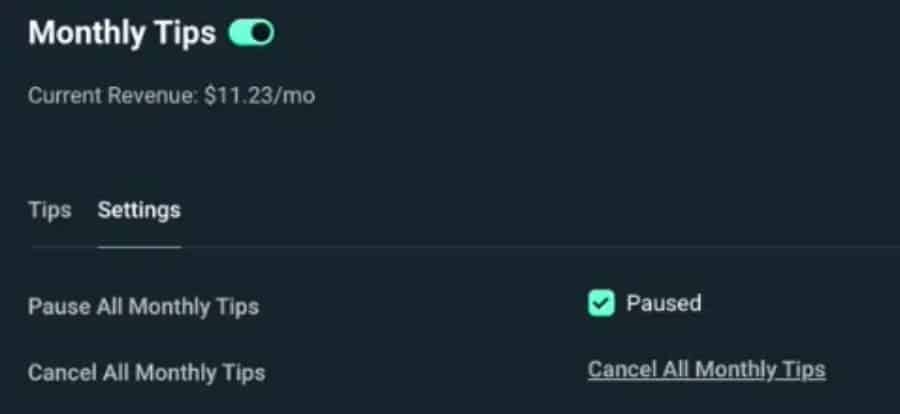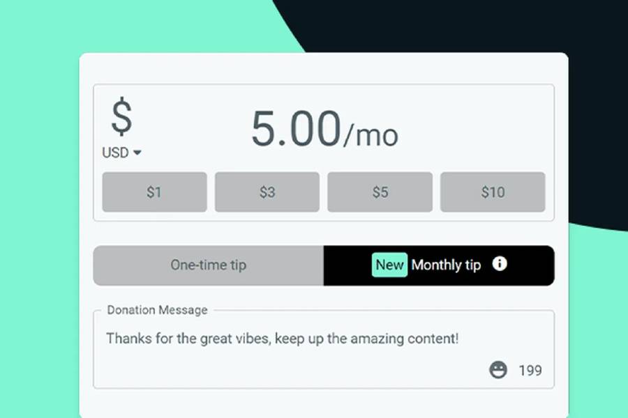 เจ้าตัวบริการ Monthly Tips นี้จะมีความยืดหยุ่นมากกว่าการสมัครสมาชิกแบบเดิม โดยสตรีมเมอร์สามารถเปิดใช้ฟีเจอร์ใหม่ผ่านทาง OBS แล้วลิงค์ไปยัง Twitch, YouTube หรือ Facebook ได้โดยตรง และสามารถเปิดปิดฟีเจอร์ รวมไปถึงการกำหนดราคาที่การตั้งค่าได้ตลอดเวลา
