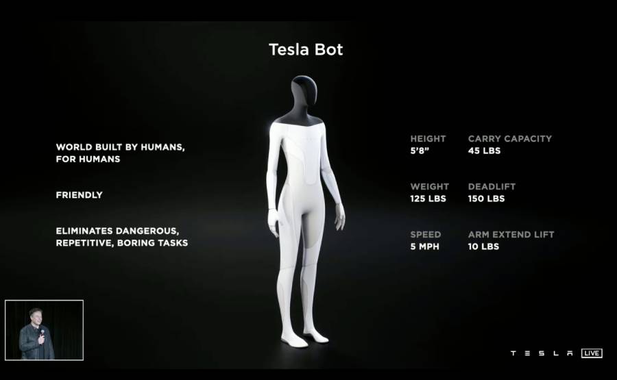 Elon Musk ซีอีโอของ Tesla เผยว่าบริษัทของกำลังพัฒนาหุ่นยนต์ที่มีความคล้ายมนุษย์ชื่อว่า Tesla Bot และคาดว่าตัวต้นแบบตัวแรกอาจพร้อมเปิดตัวในช่วงต้นปีหน้า (2022)