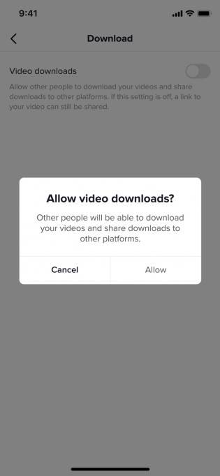 ที่สำคัญก็คือคลิปที่ถูกทำการอัปโหลดโดยบัญชีผู้ใช้ที่มีอายุต่ำกว่า 16 ปีจะไม่สามารถถูกดาวน์โหลดลงตัวเครื่องผ่านแพลตฟอร์มได้อีกต่อไป เมื่อผู้ใช้ที่อายุต่ำกว่า 16 ปีโพสต์วิดีโอไปยัง TikTok ป๊อบอัพจะแจ้งเตือนให้พวกเขาเลือกว่าผู้ใช้รายใดสามารถดูวิดีโอนี้ได้บ้าง