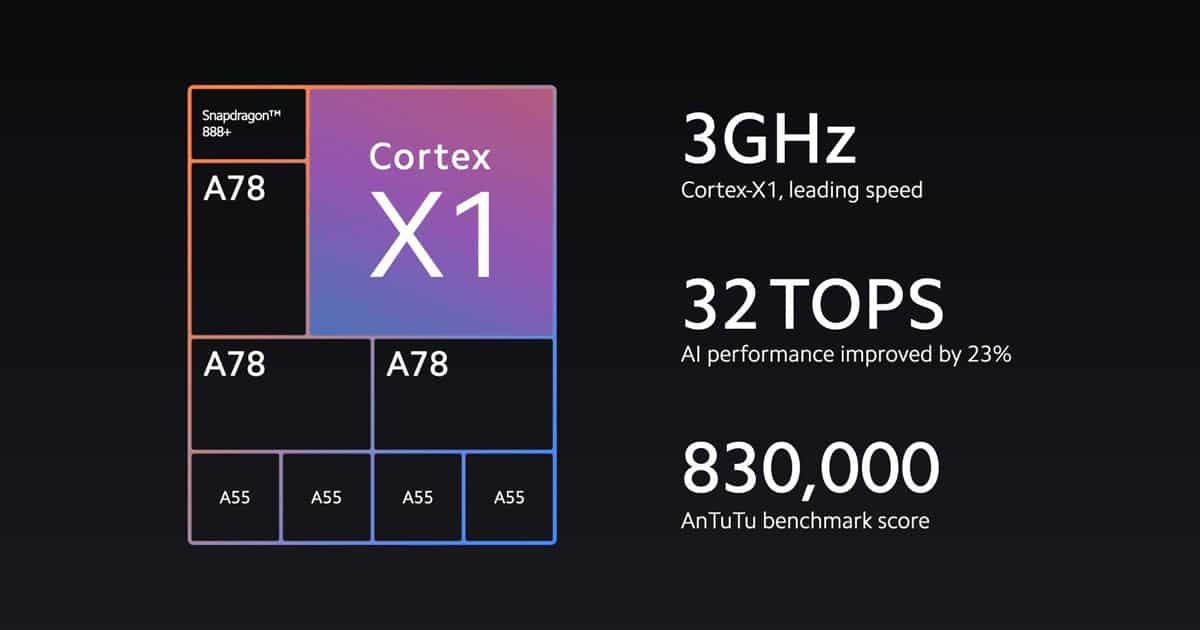 สมาร์ทโฟน Xiaomi Mix 4 เป็นสมาร์ทโฟนเครื่องแรกที่เปิดตัวด้วยชิป Snapdragon 888 + ที่เป็นชิปตัวใหม่ของ Qualcomm ที่เป็นเวอร์ชันแรงของชิป Snapdragon 888 ความเร็ว clock สูงสุด 3GHz โปรเซสเซอร์จับคู่มากับ RAM 8GB และ 12GB และพื้นที่จัดเก็บข้อมูล 128GB/256GB/512GB