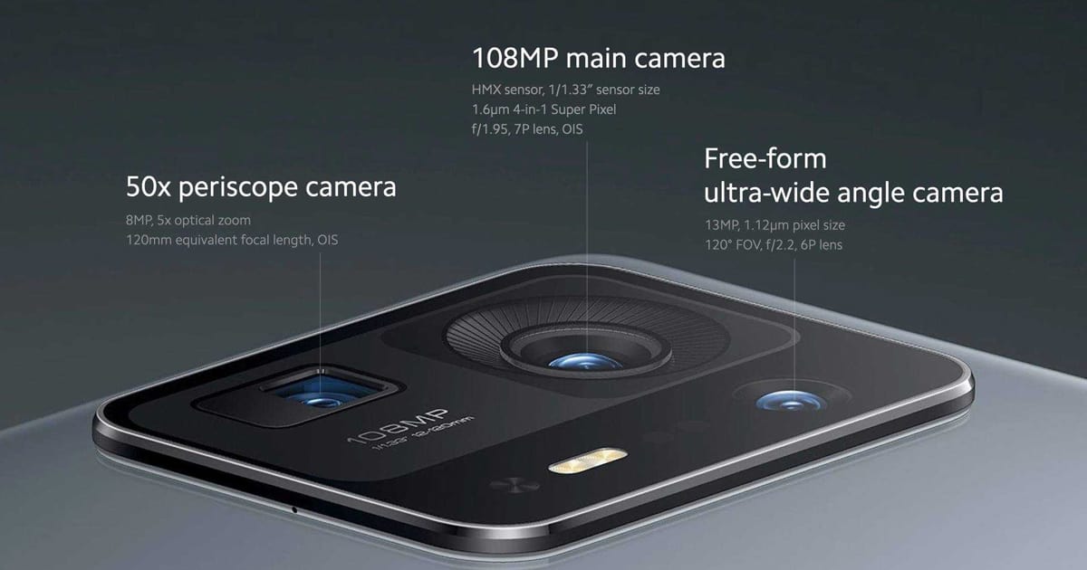 มาถึงระบบกล้อง กล้องหลักใช้เซ็นเซอร์ Samsung HMX ความละเอียด 108 ล้านพิกเซล ประสิทธิภาพคล้ายกับของ Mi 11 นอกจากนี้ยังมาพร้อมเลนส์ Ultrawide 13 ล้านพิกเซล เก็บภาพมุมกว้างได้ 120 องศา และเลนส์ periscope 8 ล้านพิกเซล ที่ซูมแบบออปติคัลได้ 5 เท่า และซูมแบบดิจิทัลได้มากถึง 50 เท่า