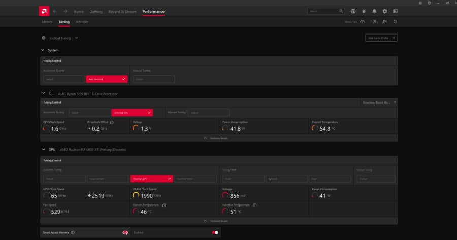 - ฟีเจอร์โอเวอร์คล็อกอัตโนมัติสำหรับคอมพิวเตอร์เดสก์ท็อฟที่ใช้ผลิตภัณฑ์ AMD: นักเล่นเกมที่ใช้กราฟิกการ์ด Radeon RX 6000 Series และเดสก์ท็อปโปรเซสเซอร์ Ryzen 5000 Series สามารถเพลิดเพลินไปกับการโอเวอร์คล็อกที่ง่ายดาย ซอฟต์แวร์ Radeon Software Adrenalin 21.9.1 นำเสนอการปรับแต่งประสิทธิภาพของโปรเซสเซอร์ Ryzen และกราฟิกการ์ด Radeon อยู่ในแท็บเดียวกันเพื่อความง่ายในการใช้งาน รวมถึงฟีเจอร์โอเวอร์คล็อกอัตโนมัติที่จะเพิ่มประสิทธิภาพของทั้งกราฟิกการ์ด Radeon RX 6000 Series และโปรเซสเซอร์ Ryzen 5000 Series