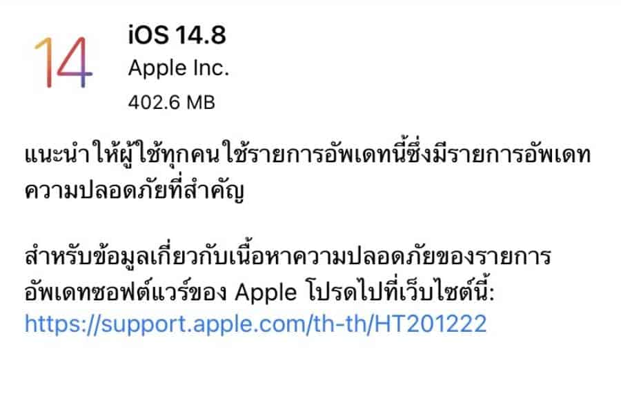 การอัปเดตอื่น ๆ สำหรับ iOS 14.8 ที่น่าสนใจ