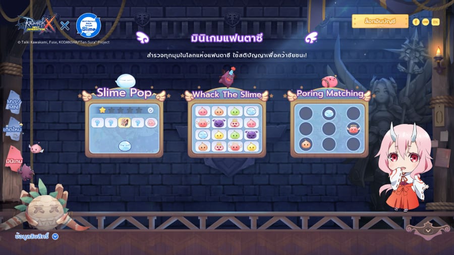 สำหรับคนที่อาจจะไม่ทราบ “เกิดใหม่ทั้งทีก็เป็นสไลม์ไปซะแล้ว” (That Time I Got Reincarnated as a Slime) เป็นซีรีส์อนิเมะยอดนิยมที่เริ่มออกอากาศในปี 2018 และเพิ่งจะจบซีซั่น 2 พาร์ทแรกไปเมื่อเดือนกรกฏาคม ที่ผ่านมา ซีรีส์นี้จะติดตามตัวเอกชื่อ “มิคามิ ซาโตรุ” หนุ่มมนุษย์เงินเดือนผู้ถูกคนร้ายแทงจนเสียชีวิต แล้วมาเกิดใหม่เป็นปีศาจสไลม์ในโลกแฟนตาซี แล้วเริ่มต้นชีวิตใหม่ในชื่อริมุรุ ซึ่งมีจุดมุ่งหมายที่จะสร้างโลกที่ต้อนรับทุกๆ เผ่าพันธุ์ให้อยู่ร่วมกันโดยสันติสุข โดยแฟนๆ ของอนิเมะน่าจะเห็นด้วยว่าหน้าตาของตัวเอกสไลม์นั้นละม้ายคล้ายน้อง Poring แห่งโลก ROX ยิ่งนัก ทำให้การร่วมมือกันครั้งนี้มีความเหมาะเจาะในแง่ของการออกแบบและสไตล์ของตัวละคร!