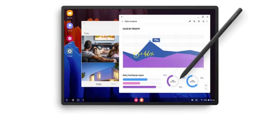 จะเห็นได้ว่าแม้หลายคนจะมีแท็บเล็ตแล้วแต่ก็ยังต้องใช้คอมพิวเตอร์ร่วมกันอยู่ดี เพราะในบางครั้งการใช้งานคอมพิวเตอร์อาจจะคุ้นมือกว่า เช่น การพิมพ์รายงานจำนวนมาก การเปิด presentation สำหรับการประชุม แต่ GalaxyTab S7 FE สามารถทำสิ่งเหล่านี้ได้ด้วยฟีเจอร์ Samsung DeX ที่เปลี่ยนแท็บเล็ตให้กลายเป็นคอมพิวเตอร์ PC ได้ โดยการปรับ interface ให้เป็นหน้าจอมอนิเตอร์เพื่อปรับรูปแบบในการใช้งาน และยังสามารถใช้งานร่วมกับ Keyboard Cover เพื่อให้พิมพ์งานต่างๆ ได้สะดวกขึ้นเหมือนกับมีคอมพิวเตอร์ PC อีกเครื่อง หรือจะเชื่อมต่อเพื่อสลับการทำงานจากแท็บเล็ตไปยังคอมพิวเตอร์ หรือคอมพิวเตอร์มายังแท็บเล็ต ก็ทำได้อย่างง่ายดาย พร้อมแชร์ข้อมูลกันได้ทันที