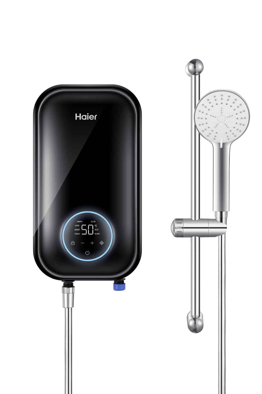 เครื่องทำน้ำอุ่นไฮเออร์ H2 Series เครื่องทำน้ำอุ่นระบบดิจิทัล สีดำ กับคอนเซ็ปต์ Spa in Your Smart Shower มาพร้อมคุณสมบัติเด่น 4 Smart ได้แก่ Smart SPA ด้วยเทคโนโลยี H-Smart Cycle ปรับอุณหภูมิร้อนและเย็นโดยอัตโนมัติ สร้างประสบการณ์การอาบน้ำที่ช่วยผ่อนคลายราวกับทำโฮมสปา Smart Safety เทคโนโลยีความปลอดภัยขั้นสูง Shock Proof ซึ่งเป็นเอกลักษณ์เฉพาะของไฮเออร์ป้องกันการรั่วของกระแสไฟฟ้าได้อย่างมีประสิทธิภาพด้วยสวิตช์กันไฟรั่ว (ELCB) แจ้งเตือน