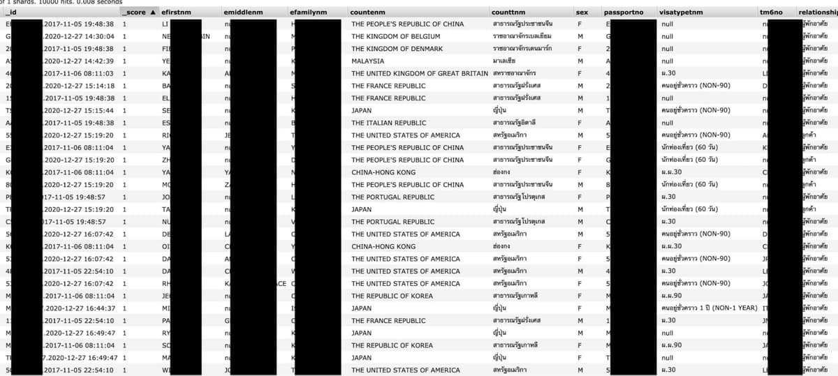 รายงานของนักวิจัยจาก Comparitech ระบุว่ามีข้อมูลรายละเอียดส่วนบุคคลของนักท่องเที่ยวต่างชาติกว่า 106 ล้านคนที่เดินทางมาประเทศไทยหลุดบนโลกออนไลน์ โดยฐานข้อมูลที่หลุดนั้นประกอบไปด้วย ชื่อ นามสกุล หมายเลขหนังสือเดินทาง วันที่เดินทางถึงประเทศไทย และข้อมูลอื่นๆ