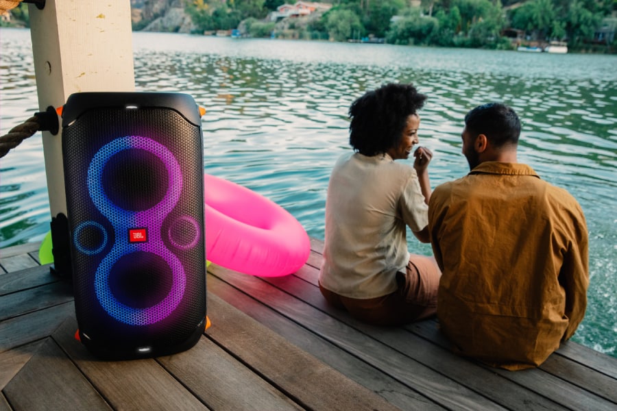 สามารถใช้งานได้ทั้งแบบ Indoor และ Outdoor คุณภาพเสียง JBL Original Pro Sound สามารถสตรีมเพลงไร้สายด้วย Blutooth 5.1 สามารถเชื่อมต่อกับ Smartphone หรือ Tablet ได้อย่างเสถียรสุด ๆ ด้านหลังประกอบด้วยปุ่มและพอร์ตต่าง ๆ มีช่องเสียบและปุ่มปรับ Gain สำหรับไมโครโฟนและกีตาร์ มีช่องเชื่อมต่อ AUX IN และ OUT ช่องเสียบ USB สำหรับเสียบแฟลชไดร์ฟ ปุ่ม TWS เชื่อมกับ Partybox ตัวอื่นเพิ่มแบบไร้สาย สามารถปรับโหมด Stereo ได้ กันน้ำได้ที่ระดับ IPX4 สามารถนำไปปาร์ตี้ริมสระว่ายน้ำได้ โดยไม่ต้องกังวลเรื่องน้ำจะกระเด็นเข้าไปในตัวเครื่อง ใช้งานได้อย่างสนุกมากขึ้นด้วย Application JBL Partybox ไม่ว่าจะเป็นการปรับเล่นเสียง Effect ปรับเปลี่ยนไฟ LED ด้านหน้าลำโพง ปรับเปลี่ยน Equalizar และฟีเจอร์ต่าง ๆ ได้ตามต้องการ