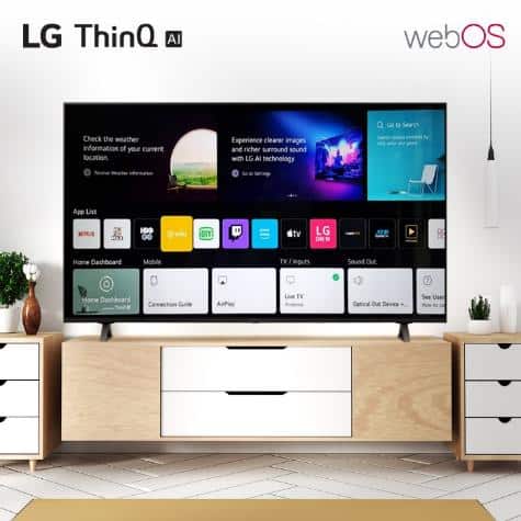 LG ThinQ AI TV รุ่นใหม่ มีการพัฒนา Home Screen แบบเต็มจอที่มาพร้อมระบบปฏิบัติการใหม่ล่าสุด webOS 6.0 พัฒนาการประมวลผลให้ค้นหาคอนเทนต์ต่าง ๆ ได้รวดเร็วและง่ายดายยิ่งขึ้น แสดงผลตัวเลือกคอนเทนต์ต่าง ๆ ให้เลือกรับชมได้อย่างจุใจ ไม่ว่าจะเป็น Netflix, Apple TV, HBO GO, Viu, MonoMax และอีกมากมาย พร้อมทั้งตรวจสอบสภาพอากาศ เข้าถึงหน้า Home Dashboard และการตั้งค่าต่าง ๆ ได้ง่ายยิ่งขึ้นผ่านหน้าจอ Home Screen นอกจากนี้ ยังโชว์คอนเทนต์แนะนำจากแอปพลิเคชันที่รับชมบ่อย เพื่อการเข้าชมคอนเทนต์ที่ง่ายและต่อเนื่อง
