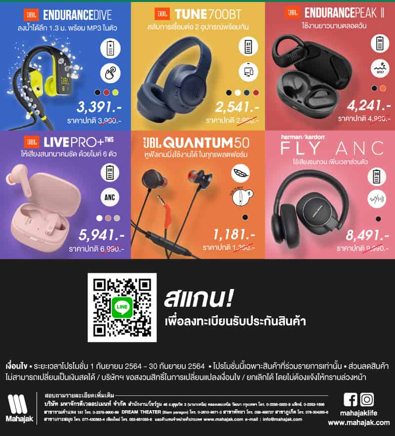 - JBL Tune700 BT ลดเหลือ 2,541 บาท (จาก 2,990 บาท)