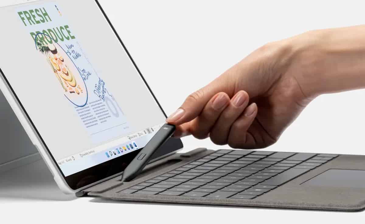 คีย์บอร์ดที่ใช้เป็นตัว Surface Pro Signature ที่แยกจากตัวเครื่องได้ และมีช่องสำหรับเก็บ Surface Slim Pen 2 ที่คล้ายกับคีย์บอรด์ของ Surface Pro X โดยตัวสไตลัสสามารถชาร์จได้เมื่อใส่เข้าช่องเก็บที่อยู่ในคีย์บอร์ด และมีมอเตอร์แบบสัมผัสในตัวที่ช่วยจำลองความรู้สึกให้คล้ายกับการเขียนบนกระดาษให้มากที่สุด ที่สำคัญสไตลัสยังปรับปรุงโดยลดเวลาแฝง ตอบสนองไวขึ้น และให้ความแม่นยำที่มากขึ้นด้วยหัวปากกาที่ออกแบบมาใหม่
