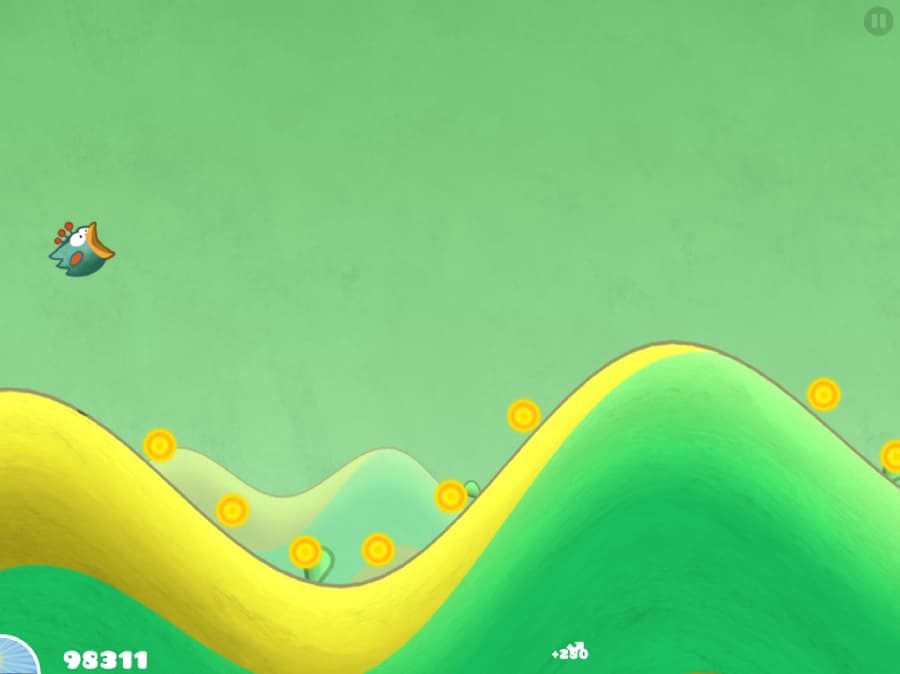- Tiny Wings จาก Andreas Illiger – Tiny Wings เป็นเกมอาเขตที่พาทุกคนโบยบินเสมือนอยู่ในความฝัน เมื่อเรากลายเป็นนกตัวน้อยที่มาพร้อมกับปีกอันจิ๋วแต่อยากจะท่องโลกที่เต็มไปด้วยเนินเขาอันสวยงาม ผู้เล่นจะต้องใช้เนินเขาในการกระโดดขึ้น สไลด์ลง และกระพือปีกให้ได้นานที่สุดจนกว่าแรงโน้มถ่วงจะดึงเรากลับสู่ผืนดิน แต่ไม่ต้องห่วงเพราะเห็นเขาลูกต่อไปอยู่อีกไม่ไกล ไปกันเลย!