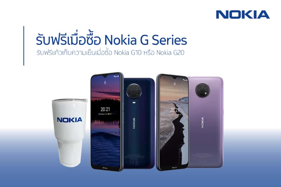 ของแถมสุดคูล ฟรี! แก้วเก็บความเย็นมูลค่า 350 บาท เมื่อซื้อ Nokia G10 หรือ Nokia G20