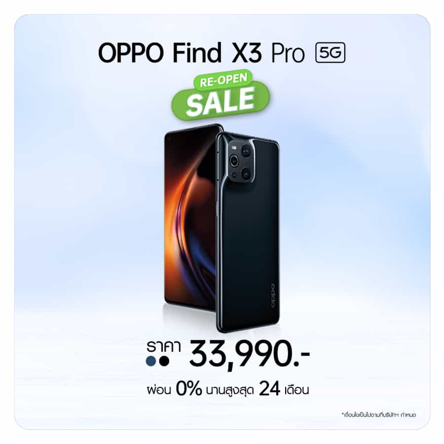 เท่านั้นยังไม่พอ! สำหรับผู้ที่ซื้อ OPPO Find X3 Pro 5G สมาร์ทโฟนแฟล็กชิพที่สุดแห่งพันล้านสี ในราคา 33,990 บาท รับสิทธิผ่อน 0% นานสูงสุด 24 เดือน