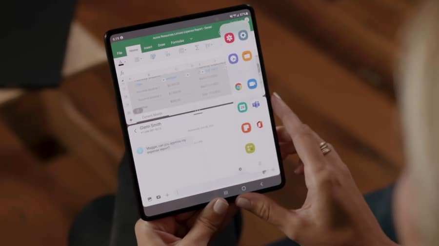 โดดเด่นด้วยการใช้งาน 3 แอปพลิเคชันได้พร้อมกัน ไม่ต้องเสียเวลาสลับแอปไปมา ซึ่งฟีเจอร์นี้ทำให้คุณสามารถดูตารางงาน พร้อมกับอ่านอีเมล รวมถึงแชทคุยกับเพื่อนร่วมงานไปพร้อมกันได้ หรือแก้ไขไฟล์ Excel พร้อมบวกเลขผ่านแอปเครื่องคิดเลข ก่อนส่งออกผ่าน Microsoft Outlook ซึ่งแต่ละหน้าจอสามารถปรับขนาดความสูงหรือความกว้างได้ตามต้องการ หรือจะแบ่งหน้าจอออกเป็นสองส่วน ผ่าน Flex Mode ก็ทำได้เช่นกัน ทั้งนี้ หากแอปพลิเคชันไหน