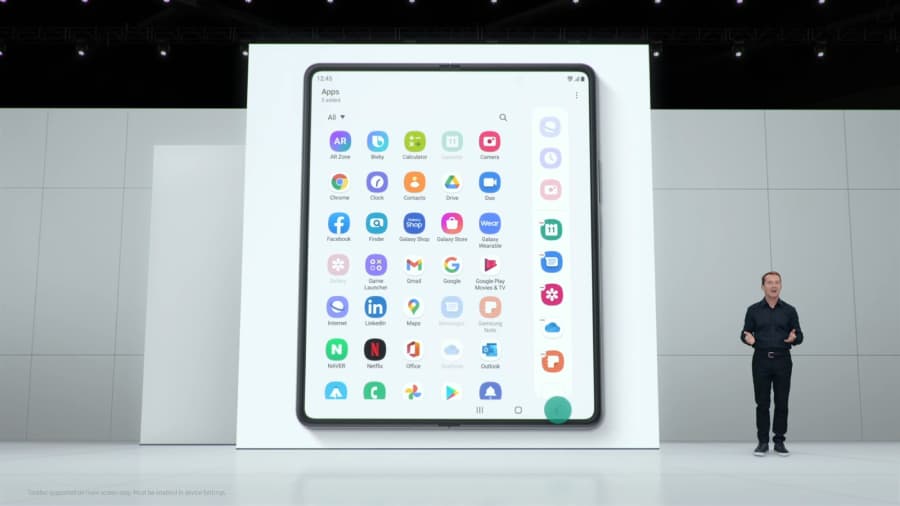 นอกจากนี้ ซัมซุงยังได้ออกแบบให้หน้าจอหลักทั้งด้านนอกและด้านในเลือกปรับแต่งแอปพลิเคชันที่แตกต่างกันได้เพื่อรองรับการใช้งานยามพับหรือกางหน้าจอ ยกตัวอย่างเช่น หน้าจอด้านนอกที่ใช้งานบ่อย คุณอาจจะเลือกแอปพลิเคชันรับ-ส่ง ข้อความ โซเชียลมีเดียต่างๆ หรือ Google เพื่อการค้นหาข้อมูลอย่างรวดเร็ว ในขณะที่หน้าจอด้านใน จะเน้นไปที่แอปพลิเคชันด้านการทำงาน อย่าง Microsoft Outlook เพื่อตอบอีเมล Microsoft Word หรือ Excel เพื่อแก้ไขงานเอกสารต่างๆ รวมถึง Zoom เพื่อการประชุมออนไลน์ เป็นต้น