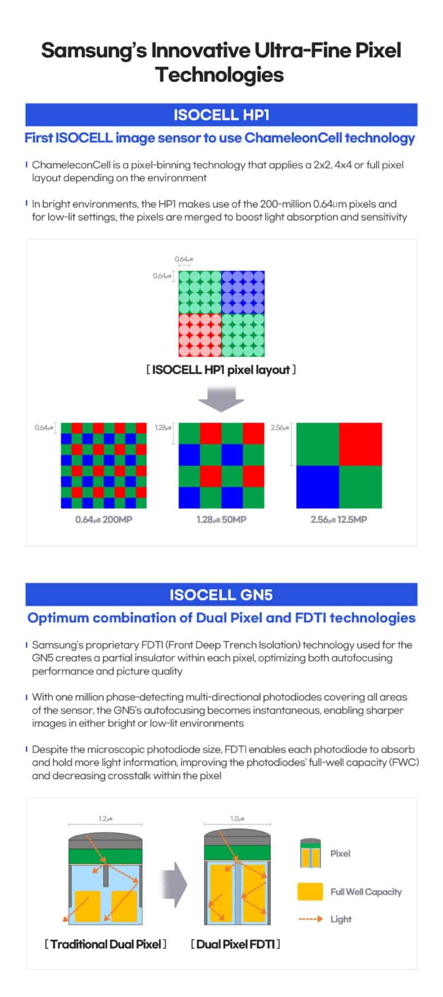 เซ็นเซอร์รุ่นนี้ยังได้ใช้เทคโนโลยีพิกเซลที่เป็นกรรมสิทธิ์ของ Samsung อย่าง Front Deep Trench Isolation (FDTI) เพื่อดูดซับแสงภายในพิกเซลให้ได้มากที่สุด และยังสามารถลด Noise ได้ดีขึ้นอีกด้วย เซ็นเซอร์รุ่นนี้ก็รองรับที่ 8K 30fps หรือ 4K 120fps ด้วย