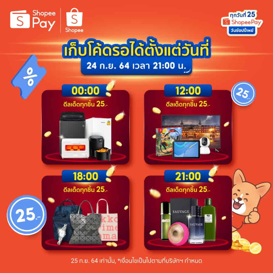 พบกันบนแอปพลิเคชัน Shopee ช้อปกันแบบ ‘SAVE and SECURE’ กับ ‘วันช้อปปี้เพย์ ทุกวันที่ 25’ ประจำเดือนกันยายนนี้ สิทธิประโยชน์และโปรโมชันที่คุ้มค่ากว่ารออยู่เพียบ วันเดียวเท่านั้น ดูรายละเอียดเพิ่มเติมได้ที่ https://www.facebook.com/ShopeePayTH