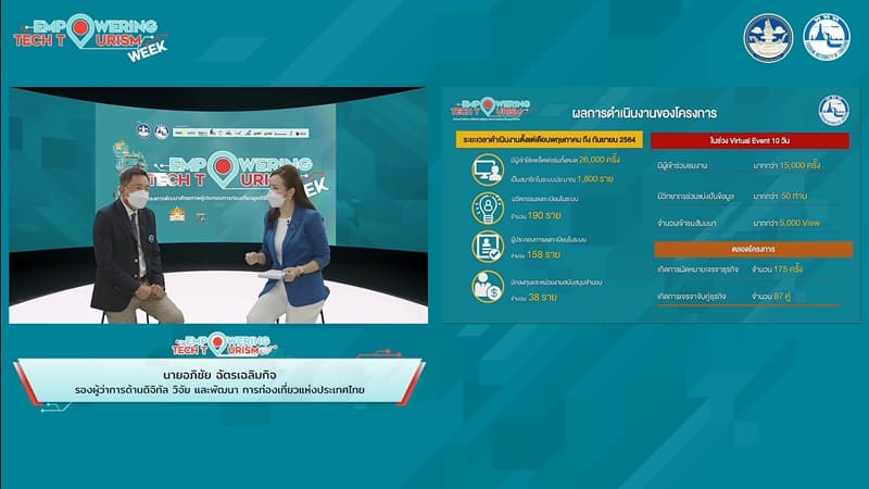 เพื่อให้ผู้ประกอบการท่องเที่ยวมีศูนย์รวมในการเลือกนวัตกรรมที่เหมาะสมกับธุรกิจของตน โดยสามารถดำเนินการนัดหมายเจรจาธุรกิจแบบออนไลน์พร้อมในที่เดียว ซึ่งจากการดำเนินโครงการฯที่ผ่านมา ตั้งแต่พฤษภาคม ถึง กันยายน 2564 มีผู้เข้าใช้แพล็ตฟอร์ม www.empoweringtechtourism.com กว่า 26,000 ครั้ง เป็นสมาชิกในระบบประมาณ 1,800 ราย นวัตกรรมลงทะเบียนในระบบ 190 ราย ผู้ประกอบการลงทะเบียนในระบบ 158 ราย และมีนักลงทุนและหน่วยงานสนับสนุนจำนวน 38 ราย