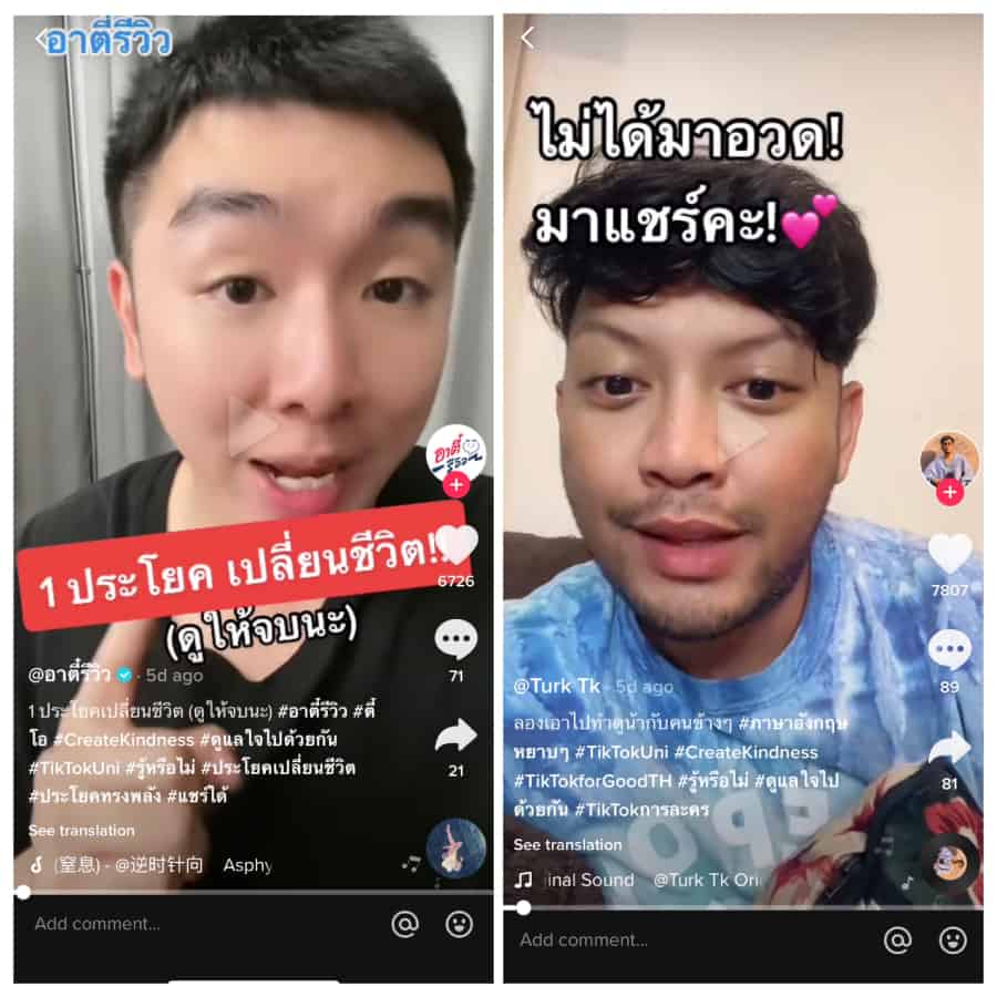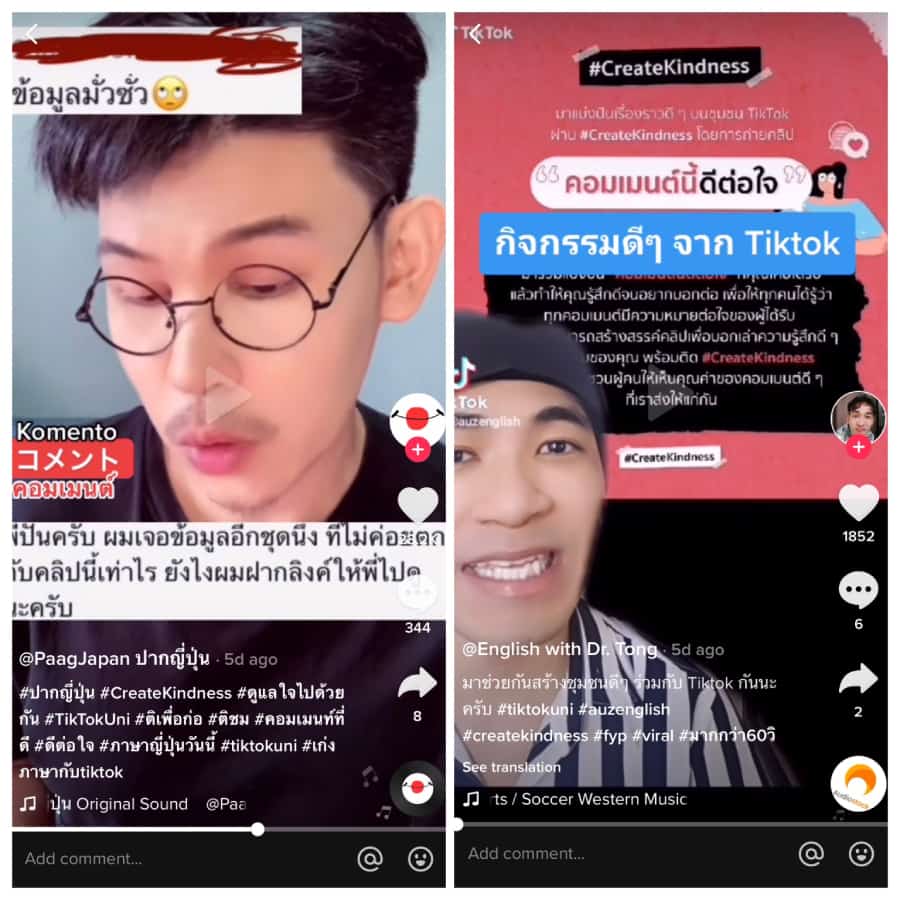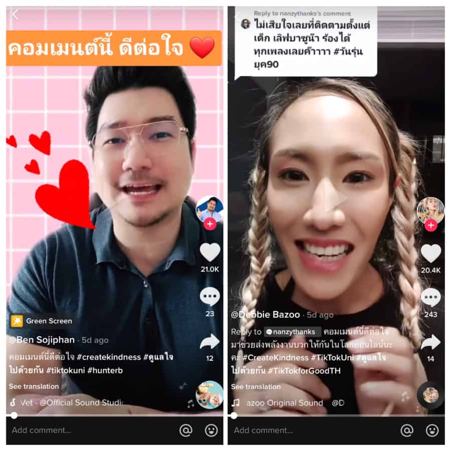 การจัดแคมเปญนี้ในประเทศไทย ได้ต่อยอดมาจากการทำ CreateKindness ของภูมิภาคเอเชียตะวันออกเฉียงใต้ ที่ได้จัดทำแคมเปญใหญ่คอนเทนท์วิดีโอ “From Meanies to Goodies” ที่มี 6 ครีเอเตอร์คนดังจากหลายประเทศเข้าร่วมเพื่อมาบอกเล่าประสบการณ์ตรงที่เคยได้รับทั้งคอนเมนต์ที่ดีและไม่ดีบนโลกออนไลน์ โดย TikTok ได้ต่อยอดแคมเปญนี้ในประเทศไทย โดยได้เชิญชวนครีเอเตอร์คนดังมาร่วมแสดงพลังผ่านธีม “คอมเมนต์นี้ดีต่อใจ” ร่วมกับพันธมิตรสำคัญ ได้แก่ กรมสุขภาพจิต และ สำนักส่งเสริมเศรษฐกิจดิจิทัล (depa) สำหรับครีเอเตอร์คนดังที่เข้ามาร่วมแคมเปญที่มาจากหลากหลายวงการ ทั้งการศึกษา ไอที ด้านไลฟ์สไตล์ และโค้ชการทำงาน ได้เข้ามาร่วมนำเสนอประสบการณ์จากการได้รับจากคอมเมนต์ที่ดีและไม่ดี เพื่อร่วมสร้างพลังในการส่งต่อข้อความดีๆ ให้แก่กัน ดังนี้