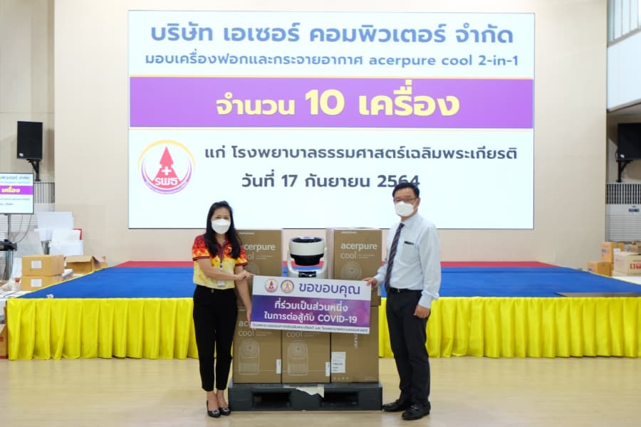 acer ส่งมอบ acerpure cool เครื่องฟอกและหมุนเวียนอากาศ แก่โรงพยาบาลธรรมศาสตร์เฉลิมพระเกียรติ และสำนักอนามัย กรุงเทพมหานคร เพื่อใช้ในภารกิจงานป้องกันและควบคุมการแพร่ระบาดของเชื้อโควิด-19 และหน่วยบริการฉีดวัคซีนเคลื่อนที่กรุงเทพมหานคร
