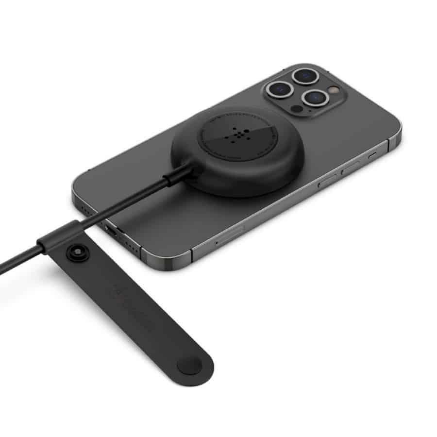 นอกจากกลุ่มผลิตภัณฑ์ชาร์จไร้สายเทคโนโลยี MagSafe แล้ว เบลคิน ยังมีรูปแบบการชาร์จที่ใช้การยึดติดแบบแม่เหล็กที่สามารถใช้งานร่วมกับ iPhone 12 Series และ iPhone 13 Series ได้ แท่นชาร์จไร้สายแบบแม่เหล็ก Belkin BOOST CHARGE Magnetic Wireless Charger Stand 7.5W สามารถใช้งานได้สะดวก ทั้งวิดีโอคอล หรือดูวิดีโอคอนเทนต์ในแนวนอนขณะชาร์จโทรศัพท์โดยวางไว้บนโต๊ะทำงานหรือที่ไหนก็ได้ พร้อมกันนี้ยังมี Belkin BOOST CHARGE Magnetic Portable Wireless Charger Pad 7.5W มีลักษณะรูปแบบคล้ายหูฟังของแพทย์ สามารถชาร์จ iPhone ได้ด้วยแผ่นชาร์จรูปวงกลมเล็ก ๆ พร้อมสายที่บางและยาว ให้ประสิทธิภาพการใช้พื้นที่ที่ยอดเยี่ยมและเหมาะอย่างยิ่งสำหรับการพกพา