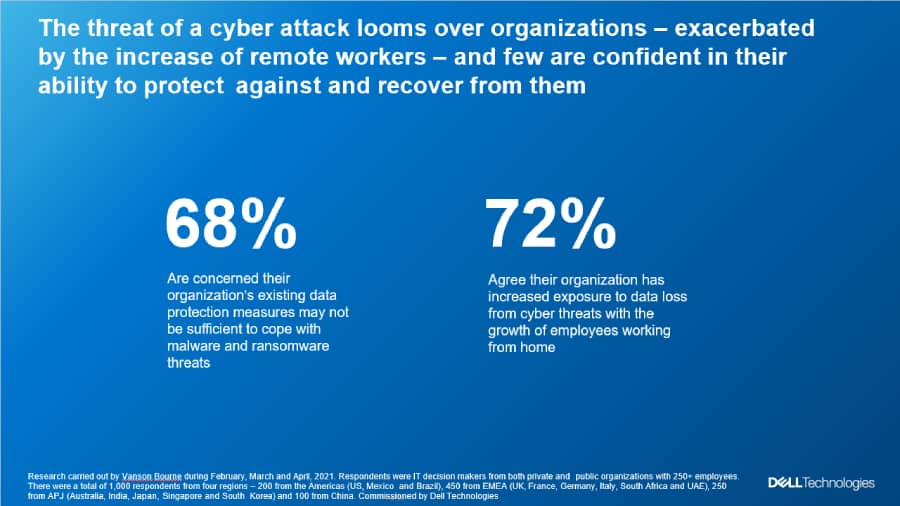 ผลสำรวจจากดัชนีด้านการปกป้องข้อมูลทั่วโลก ของเดลล์ เทคโนโลยีส์ ประจำปี 2021 (2021 Global Data Protection Index หรือ GDPI) เผยว่าองค์กรธุรกิจต่างกำลังเผชิญกับความท้าทายด้านการปกป้องข้อมูลหลายประการที่เกิดจากการโจมตีด้วยแรนซัมแวร์อย่างต่อเนื่อง และการใช้เทคโนโลยีเกิดใหม่อย่างแอปพลิเคชันที่ทำงานบนคลาวด์ รวมถึง Kubernetes Containers และ AI