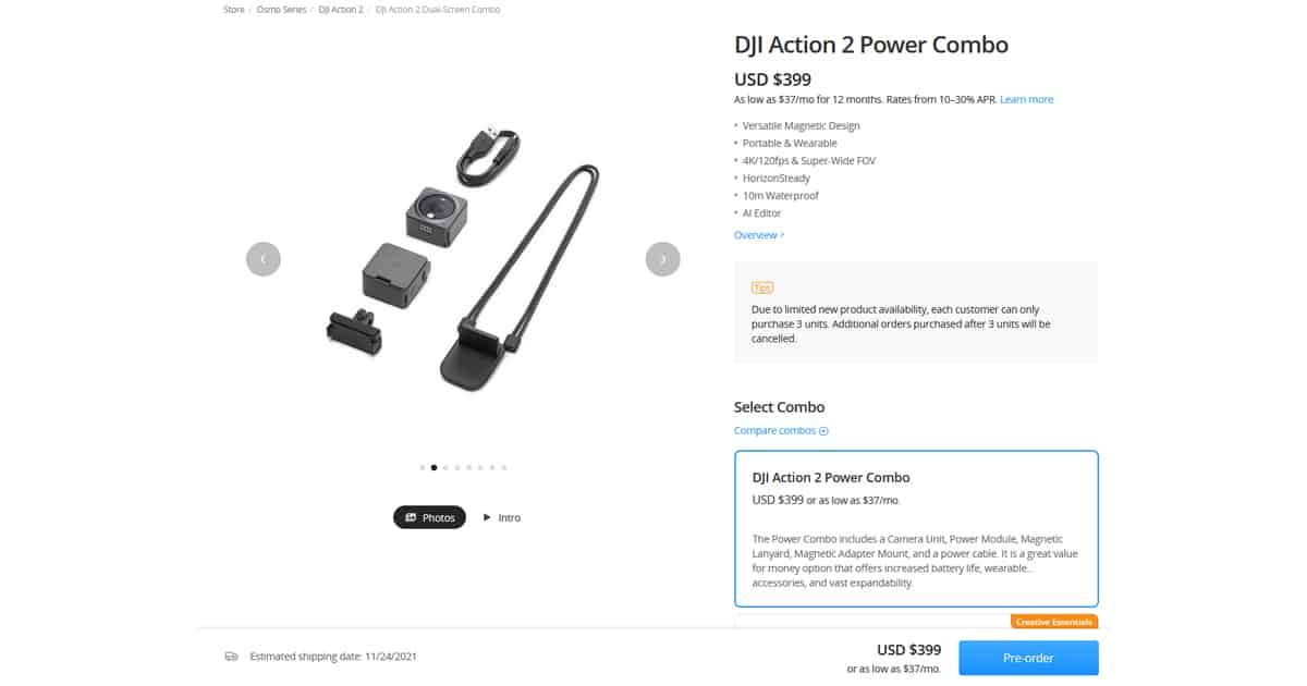 สำหรับผู้ที่สนใจ DJI Action 2 สามารถสั่งจองล่วงหน้าได้แล้ว โดยมี แพคเกจ “DJI Action 2 Power Combo” ใน ราคา 14,990 บาท ที่ประกอบไปด้วยกล้อง , โมดูลพลังงาน , เชือกคล้องคอแบบแม่เหล็ก และเมาท์อะแดปเตอร์แม่เหล็ก