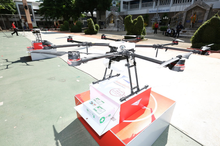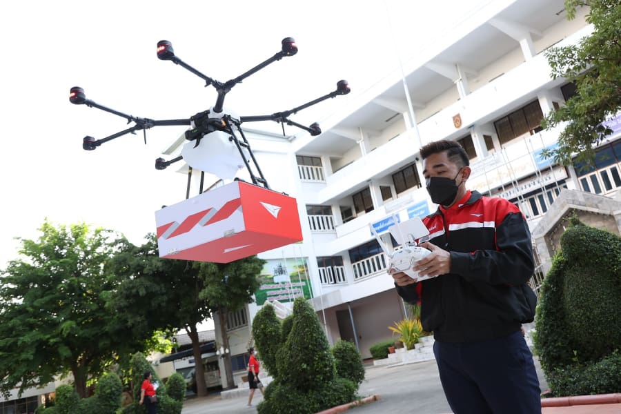 นโยบายระดับชาติให้รัฐมนตรีว่าการกระทรวงดิจิทัลเพื่อเศรษฐกิจและสังคม และ ไปรษณีย์ไทย ผู้นำด้านการขนส่งระดับประเทศ ดึงศักยภาพการเข้าถึงเครือข่ายครัวเรือน มาบูรณาการร่วมกับเทคโนโลยีดิจิทัล เพื่อเสริมสร้างสังคมคุณภาพด้านสาธารณสุขของคนไทยให้มีความเป็นเลิศ โดยการทดลองบิน โดรนส่งยา อำนวยความสะดวกในสถานการณ์ที่มีข้อจำกัดด้านการขนส่ง ทั้งสถานการณ์โควิด-19 น้ำท่วม หรือพื้นที่ทุรกันดารห่างไกลให้มีความราบรื่นยิ่งขึ้น