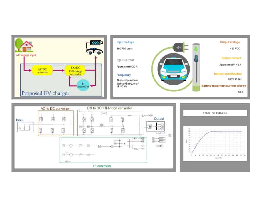 ซึ่งประกอบด้วย Power Converters ซึ่งถูกออกแบบให้แปลงไฟฟ้ากระแสสลับเป็นไฟฟ้ากระแสตรงที่เหมาะสมกับการชาร์จประจุตรงเข้าไปที่แบตเตอรี่ลิเธียมไอออน (Li-ion Battery) ภายในตัวรถยนต์ไฟฟ้า โดยควบคุมการทำงานของอุปกรณ์ Solid State ภายใน Converter ในรูปแบบ CCCV (Constant Current Constant Voltage) ที่จะสามารถช่วยลดระยะเวลาในการชาร์จประจุได้ และใช้ระบบควบคุมแบบ PI Controller ในการควบคุมกระแสและแรงดันไฟฟ้าขณะชาร์จประจุให้เหมาะสมกับแบตเตอรี่ลิเธียมไอออน (Li-ion Battery) ส่วน วิธีการใช้งาน ตัวอุปกรณ์ต้องใช้งานกับระบบไฟฟ้าสามเฟส โดยด้านที่ต่อเพื่อทำการชาร์จรถยนต์ไฟฟ้าจะเป็นหัวต่อชนิด CCs Type2 ทั้งนี้บ้านโดยทั่วไปเป็นไฟฟ้าระบบ 1 เฟส 15(45) แอมป์ ต้องไปขอการไฟฟ้าเปลี่ยนเป็น 3 เฟส 30(100) แอมป์