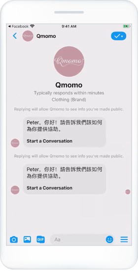 วิธีนี้มีการนำไปใช้และประสบความเร็จโดย QMomo แบรนด์ชุดชั้นในจากไต้หวัน โดยมีการสร้าง Click-to-Messenger ads ที่มีการใช้ภาพของหน้าร้านที่สวยงามเพื่อดึงดูดลูกค้า โดยเมื่อลูกค้าเข้ามาที่ Messenger จะได้รับการต้อนรับจากพนักงานผ่านแชท และช่วยทำการนัดหมายเข้าชมสินค้าที่หน้าร้าน จากการที่มีโฆษณาที่ดึงดูดและความสะดวกในการจองบน Messenger ทำให้ยอดขายของ QMomo เพิ่มขึ้นทั้งออฟไลน์และออนไลน์ โดยคิดเป็นผลตอบแทนจากการโฆษณาผ่านยอดขายออฟไลน์อยู่ที่ 17.7 เท่า และมียอดขายออนไลน์เพิ่มขึ้นร้อยละ 34 และมีการเพิ่มสินค้าไปยังรถเข็นเพิ่มขึ้นร้อยละ 43