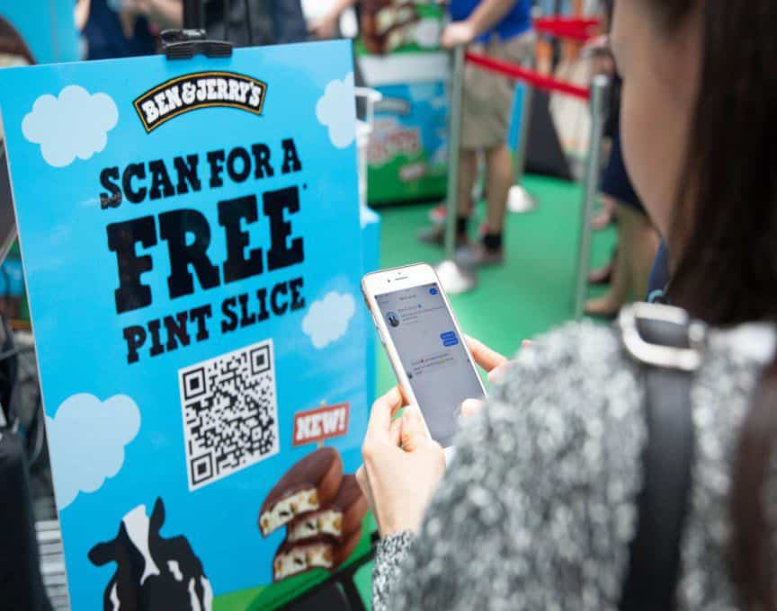 Ben & Jerry’s สิงคโปร์ นำแนวทางนี้ไปใช้ในการเปิดตัวไอศครีมรสใหม่ โดยใช้โฆษณาแบบ Click-to-Messenger เพื่อนำกลุ่มคนที่มีแนวโน้มที่จะเป็นลูกค้ามาสู่การแชทบน Messenger โดยพวกเขาจะทำแบบสอบถามสั้นๆ จากนั้นจะได้ QR code ไปแลกไอศครีมฟรีที่งานเปิดตัว และผู้เข้าร่วมงานก็ยังมีการใช้งาน Messenger เพื่อแลกบัตรของขวัญ แคมเปญที่ใช้ทั้งสองช่องทางนี้ไม่เพียงแค่ทำให้แบรนด์เข้าใจลูกค้าผ่านแบบสอบถามเท่านั้น แต่ยังทำให้ยอดการแลกตัวอย่างไอศครีมเพิ่มขึ้น 2.2 เท่า และมียอดขายเพิ่มขึ้นร้อยละ 20 เทียบกับแคมเปญที่ไม่ได้ใช้ Messenger