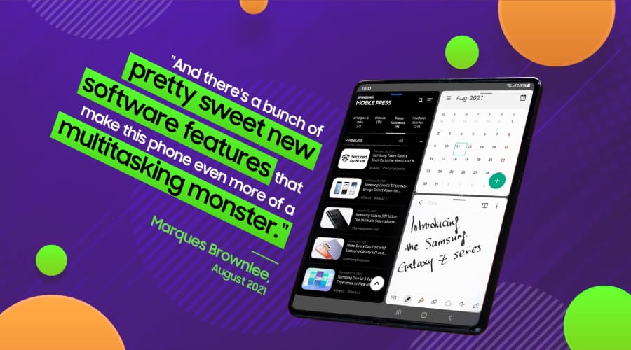 “Galaxy Z Fold3 5G มาพร้อมกับซอฟต์แวร์ใหม่มากมาย ซึ่งทำให้สมาร์ทโฟนรุ่นนี้มอบความมัลติทาส์กเพิ่มขึ้นกว่าเดิมอีกหลายเท่า” Marques Brownlee