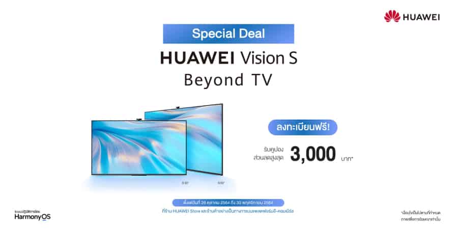 และเตรียมพบกับ HUAWEI nova 9, HUAWEI WATCH GT 3 Series และHUAWEI Vision S ที่เตรียมเข้ามาวางจำหน่ายในประเทศไทยเร็วๆ นี้แน่นอน นอกจากนี้พิเศษสุดสำหรับใครที่สนใจ HUAWEI Vision S สามารถลงทะเบียนเพื่อรับคูปองส่วนลดสูงสุด 3,000 บาท[6] ได้ก่อนใครผ่านทางเว็บไซต์ HUAWEI Store และร้านค้าอย่างเป็นทางการของหัวเว่ยบนแพลตฟอร์มอีคอมเมิร์ซ ตั้งแต่วันที่ 28 ตุลาคม 2564 ถึง 30 พฤศจิกายน 2564 และสามารถติดตามข่าวสารอัปเดตก่อนใครได้ทางเฟซบุ๊กแฟนเพจ HUAWEI Mobile TH