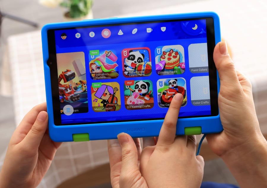 สำหรับการจัดสรรคอนเทนต์ให้เด็กเข้าถึงได้สะดวก และปลอดภัย ครอบครัวที่มีแท็บเล็ตอยู่ก็สามารถจัดสรรแอปพลิเคชันที่เหมาะสำหรับลูกน้อยไว้อยู่บนหน้าโฮมด้วยกันเพื่อเข้าถึงได้ง่าย หรือรวมแอปฯ ไว้ด้วยกันเป็นกลุ่ม แต่ให้สะดวกก็คือ ถ้าเรามีแท็บเล็ตที่จัดสรรแอปฯ ต่างๆ ที่คัดเลือกมาแล้วว่าเหมาะสำหรับเด็ก ก็จะยิ่งดีขึ้นไปอีก ตอนนี้ Kids Corner ของ HUAWEI MatePad T 8 Kids Edition ที่มีกลุ่มเป้าหมายเป็นพ่อแม่ที่มีลูกวัยเรียนโดยเฉพาะนั้น ไม่ได้มีเพียงแค่แอปฯ สำหรับเด็กรวมกันบนที่เดียว และหน้าตาน่าเล่นเท่านั้น แต่มีมุมให้เด็กๆ ได้ลับฝีมือการสร้างสรรค์ เช่น Painting รวมถึงลับคมสมองวิชาพื้นฐานต่างๆ ผ่าน Baby Panda World ที่รวมเกมผ่านด่านกับเจ้า Baby Panda ไว้มากมายนอกจากจะได้สนุกกับเรื่องราวผ่านตัวละครน่ารักๆ ระหว่างผ่านด่านเด็กๆ ก็จะได้เจอกับเกมทดลองสติปัญญาอย่างโจทย์เลข หรือควิซภาษาอังกฤษไปพร้อมกัน และ Azoomee แพล็ตฟอร์มรวมเกมกว่า 200 เกม และวิดีโออีกมากมายที่ทั้งน่าสนุก พร้อมอัดแน่นไปด้วยการให้ความรู้เกี่ยวกับโลกกว้างในเวลาเดียวกัน นอกเหนือจากคอนเทนต์เหล่านี้ พ่อแม่เองก็สามารถบริหารจัดการได้ว่าลูกจะเข้าใช้แอปฯ ไหน และดูรูป หรือชมวิดีโอไหนได้บ้างที่เหมาะสม ผ่าน App Management และ Content Management