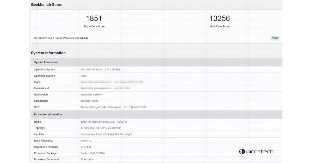 Geekbench ได้ทดสอบประสิทธิภาพของโปรเซสเซอร์ Intel Core i9-12900HK โดยได้คะแนน Single-Core ไป 1,851 คะแนน และได้คะแนน Multi-Core 13,256 คะแนน