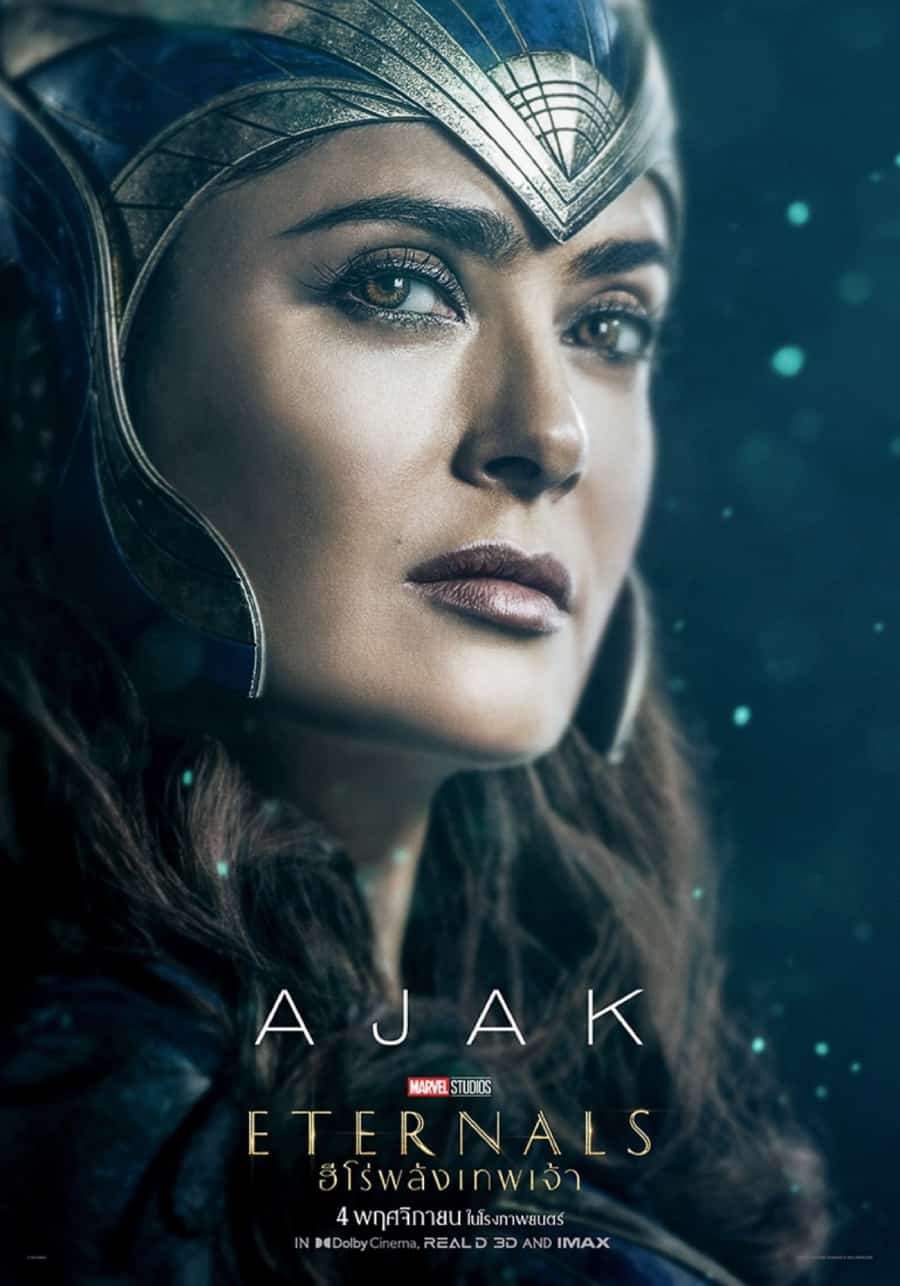 เอแจ็ก Ajak (รับบทโดย ซัลม่า ฮาเย็ค) ฮีโร่นักคิด ผู้เป็นหัวหน้าของกลุ่ม Eternals ที่คอยสนับสนุน แนะแนวทาง และดูแลทุกคนด้วยพลังในการเยียวยารักษา อีกทั้งเธอเป็นคนเดียวที่สามารถติดต่อสื่อสารกับ Celestials ผู้สร้างเผ่าพันธุ์ Eternals ได้