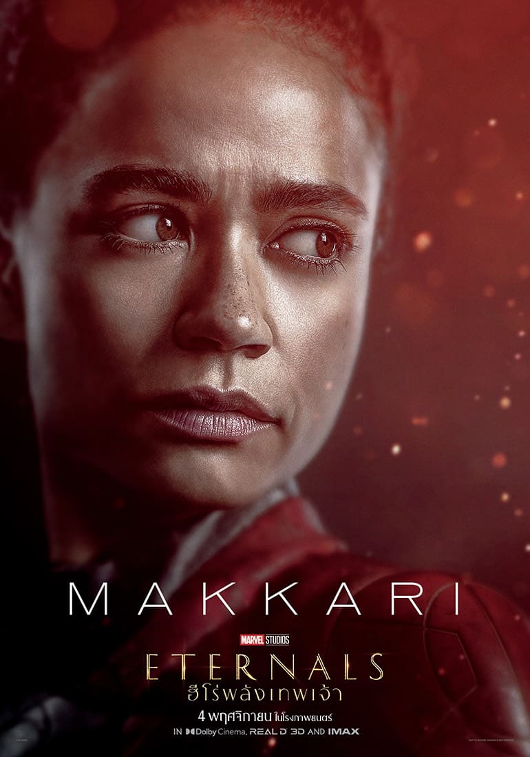 มัคคารี Makkari (รับบทโดย ลอเรน ริดลอฟฟ์) ฮีโร่นักสู้ ผู้มีความเร็วที่สุดในจักรวาล เธอวิ่งเร็วกว่าเสียง และความเร็วของเธอทำให้สามารถจู่โจมก่อนที่ศัตรูจะสังเกตเห็นได้ มัคคารีเป็นซูเปอร์ฮีโร่ผู้พิการทางการได้ยิน ซึ่งลอเรน ริดลอฟฟ์ ผู้รับบทนี้ก็เป็นผู้พิการทางการได้ยินด้วยเช่นเดียวกัน