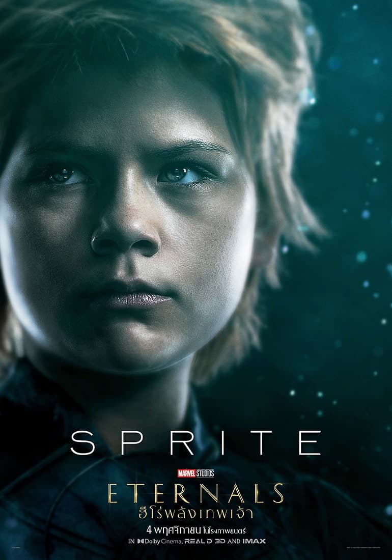 สไปร์ท Sprite (รับบทโดย ลีอา แม็กฮิว) ฮีโร่นักคิด ผู้มีร่างกายเป็นเด็กตลอดกาล เธอมีพลังในการสร้างภาพลวงตาจากพลังแห่งจักรวาลของเธอ และเธอสามารถทำให้ตัวเองและคนอื่น ๆ ล่องหนได้