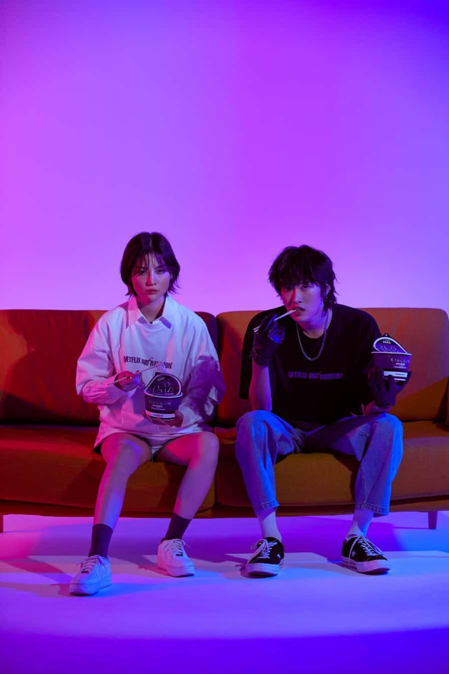 ไฮไลต์สุดโดดเด่นในคอลเลกชันนี้คือเสื้อยืดที่หยิบเอาคอนเซ็ปต์ Netflix and Ramyeon ที่มีนัยของ Netflix and Chill ในวัฒนธรรมร่วมสมัยของเกาหลี มาผสานกับกิมมิคการคืนชีพจากซีรีส์ ผีดิบคลั่ง บัลลังก์เดือด (Kingdom) นอกจากนี้ยังเป็นโอกาสให้แฟนๆ ของ Netflix ได้ลองสวมใส่เสื้อผ้าที่ได้แรงบันดาลใจจากเสื้อผ้าของทหารจากกองทัพเกาหลีใต้ในซีรีส์ D.P. หน่วยล่าทหารหนีทัพ (D.P.) รวมทั้งไอเทมสุดฮิตจากซีรีส์ สควิดเกม เล่นลุ้นตาย (Squid Game) ที่ตอนนี้รับรองว่าไม่มีใครที่ไม่รู้จัก ไม่ว่าจะเป็นตุ๊กตาเด็กหญิงสุดหลอนในเกม ‘เออีไอโอยู’ และพิเศษสุดๆ กับเสื้อยืดสกรีนหมายเลข 001 ถึง 456 ที่ได้แรงบันดาลใจมาจากยูนิฟอร์มผู้เข้าแข่งขัน “สควิดเกม” ที่มีจำกัดเพียง 456 ตัว และจะเป็นการจำหน่ายในรูปแบบของการสุ่มหมายเลขบนเสื้อเท่านั้น! เรียกว่าทุกไอเทมคัดสรรมาแล้วว่าเห็นปุ๊บก็รู้ปั๊บว่านี่แหละคนอินซีรีส์ของแท้!