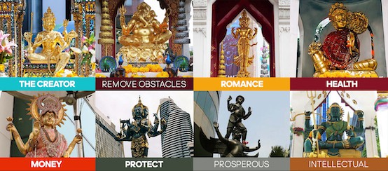 - การใช้เทคโนโลยีกราฟฟิคโชว์องค์เทพแบบ 3 มิติ เห็นรายละเอียดองค์เทพแบบคมชัด พร้อมบทสวดบูชาของแต่ละองค์เทพ