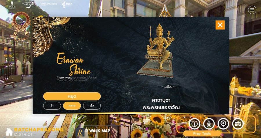 ผู้ใช้งานสามารถเปิดประสบการณ์ใหม่สู่การท่องเที่ยวในย่านราชประสงค์และสักการะองค์เทพฯ แบบออนไลน์ได้ทาง