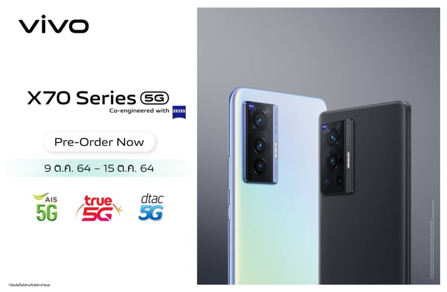 vivo เปิดให้แฟนๆ สมาร์ตโฟน X Series ได้สั่งจองเครื่องล่วงหน้า วันนี้ – 15 ตุลาคม 2564 ทั้ง vivo X70 Pro 5G และ X70 5G ราคา เริ่มต้น 21,999 บาท