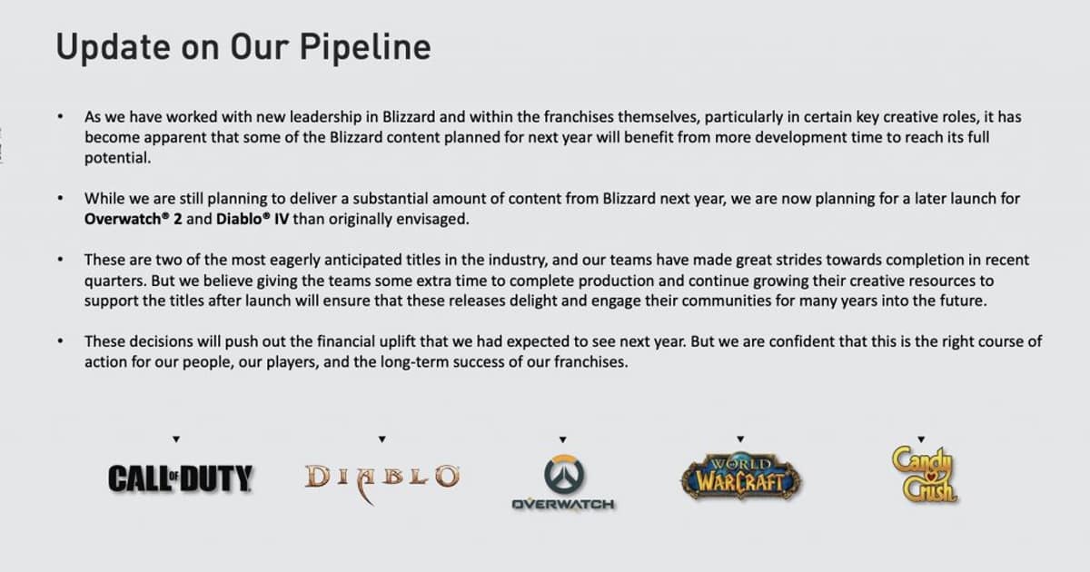 หนึ่งในสาเหตุสำคัญที่ทำให้เกิดการเลื่อนวันวางจำหน่ายเกม คือ เกิดการเปลี่ยนแปลงในทีมบริหารของ Blizzard มากมายในปีนี้ ไม่ว่าจะเป็น