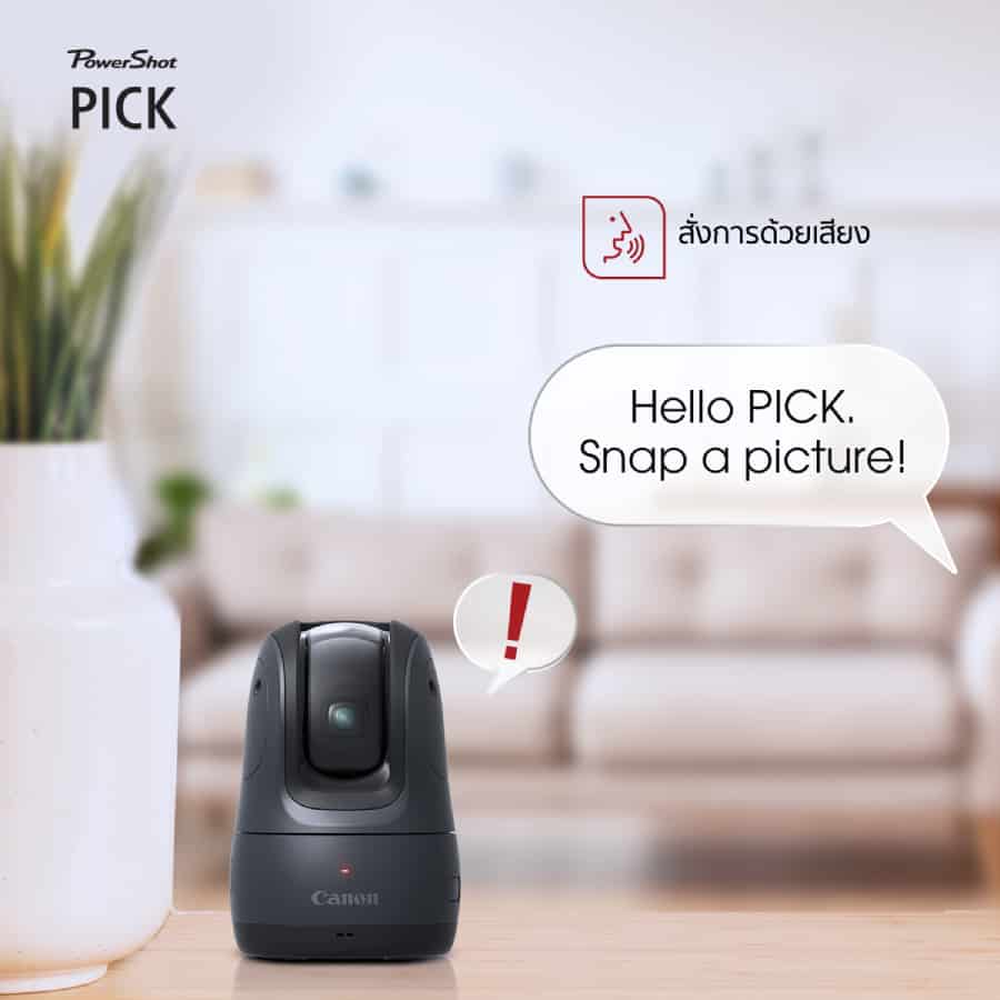 สำหรับไฮไลท์ก่อนปิดปี 2564 นี้ แคนนอน ขอส่งมอบประสบการณ์การเก็บภาพความประทับใจและความทรงจำดีๆผ่านผลิตภัณฑ์ใหม่ตัวล่าสุดของเรา คือ กล้องCanon PowerShot PICK สำหรับกล้องน้องใหม่สุดล้ำตัวนี้ มาพร้อมกับความอัจฉริยะและความสามารถพิเศษที่เรียกว่า AI Camera สามารถถ่ายภาพได้เองด้วยระบบติดตามใบหน้าและรอยยิ้ม โดยกล้องจะขยับหมุน ปรับองศา และจัดองค์ประกอบให้เองอัตโนมัติ เพียงแค่เราพูดว่า “Hello PICK” และตามด้วยคำสั่ง เช่น ให้ถ่ายภาพนิ่ง หรือ ถ่ายวิดีโอ หลังจากนั้น กล้องก็จะทำการโฟกัส และติดตามเรา เพื่อปรับองศาและจัดองค์ประกอบภาพให้สวยงามได้โดยอัตโนมัติ แถมยังสามารถตั้งค่าให้จดจำใบหน้าของเราได้ ซึ่งเราสามารถลงทะเบียนให้กล้องจดจำใบหน้าทั้งของตัวเองและคนในครอบครัวได้ตามที่ต้องการ ซึ่งระบบ AI จะทำให้เจ้ากล้องCanon PowerShot PICK นี้จดจำและรู้ได้ทันทีว่าจะต้องโฟกัสที่ใครบ้างขณะที่มีการบันทึกภาพ ทำให้ทุกคนในภาพมีโมเม้นต์ที่สวยสุดประทับใจ ทำหน้าที่เหมือนเป็นตากล้องส่วนตัวเก็บทุกภาพให้เราได้อย่างสมบูรณ์แบบ ซึ่งระบบจะคัดเลือกรูปที่ดีที่สุดให้กับเจ้าของภาพได้อีกด้วย ทำให้ไม่พลาดทุกจังหวะความสนุก