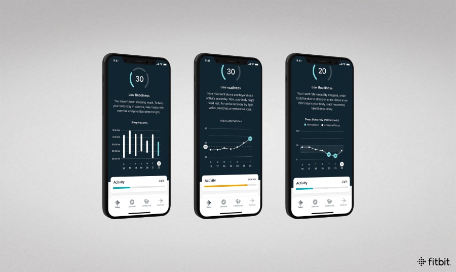 Daily Readiness Score ฟีเจอร์สำหรับสมาชิก Fitbit Premium จะช่วยให้คุณสามารถเข้าถึงข้อมูลเชิงลึกเรื่องสุขภาพ เช่น ข้อมูลการทำกิจกรรม, ระดับการเต้นของหัวใจ (HRV) ตลอดช่วงระยะเวลาในการนอนหลับ เพื่อช่วยเตือนว่าคุณควรจะออกกำลังกายหรือควรพักฟื้นร่างกาย