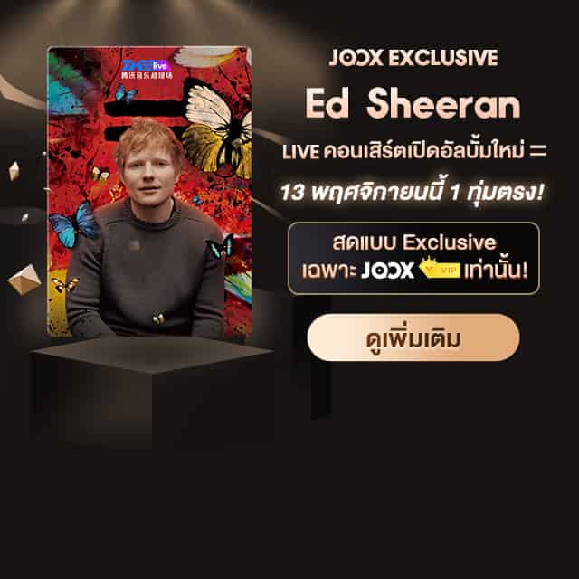 แฟนๆ ทั่วเอเชียเตรียมฟิน JOOX แพลตฟอร์มดนตรีชั้นนำของเอเชีย เตรียมจัดไลฟ์สตรีมคอนเสิร์ตโปรโมทอัลบั้มใหม่ ‘=’ (Equals) ของซูเปอร์สตาร์ระดับโลก “Ed Sheeran” (เอ็ด ชีแรน) แบบเอ็กซ์คลูซีฟที่แอปพลิเคชัน JOOX เท่านั้น! พิเศษสำหรับสมาชิก VIP ซึ่งเป็นผู้ใช้งานแบบเสียค่าบริการ ในไทย ฮ่องกง มาเก๊า มาเลเซีย อินโดนีเซีย และเมียนมาร์ ชมฟรี! แต่ก่อนจะไปอินกับคอนเสิร์ตไปฟังเพลงใหม่ของ Ed Sheeran กันได้แล้วที่ JOOX