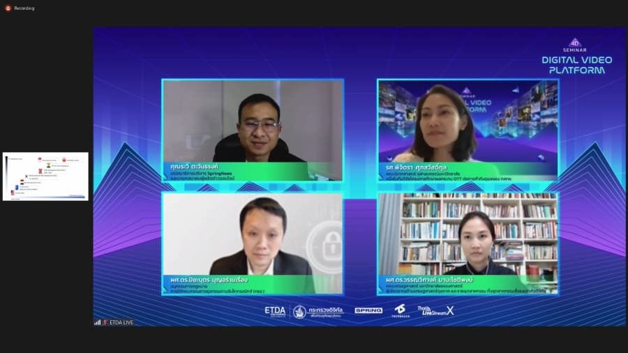 ETDA ร่วมกับบริษัท Techsauce Media จำกัด, บริษัท Thai Livestream X จำกัด, Spring News และ สมาคมผู้ผลิตข่าวออนไลน์ จัดงานสัมมนาออนไลน์ ภายใต้ชื่องาน “Digital Video Platform Seminar 4D : เผย 4 มิติ ดิจิทัลวิดีโอ แพลตฟอร์ม ดิจิทัล ขับเคลื่อนอุตสาหกรรมคอนเทนต์ไทย”