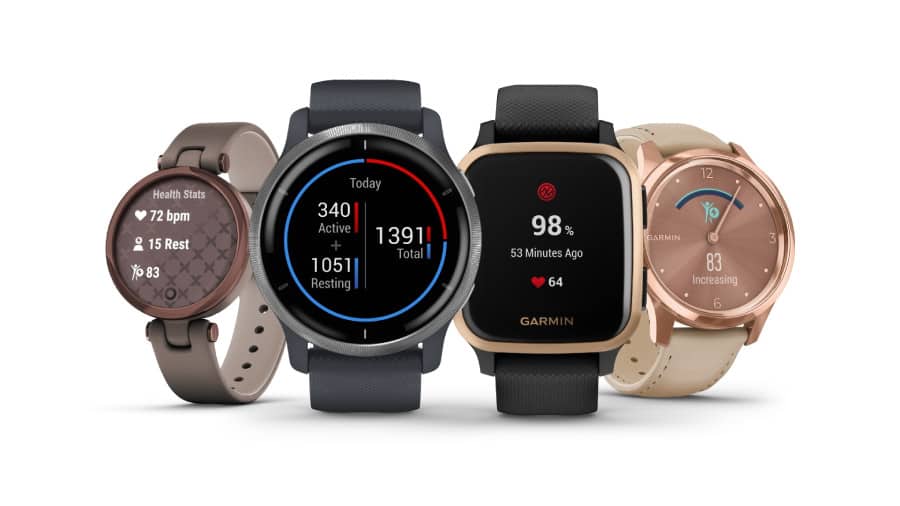 - การติดตามการเผาผลาญขณะพัก (Resting Calories) การเผาผลาญขณะพัก หรือที่เรียกว่า Resting Metabolic Rate (RMR) เป็นแคลอรีที่ร่างกายเผาผลาญอยู่ตลอดเวลา แม้ว่าร่างกายจะอยู่ในสภาวะที่ไม่เคลื่อนไหว ไม่ว่าจะนอน หรือ นั่ง การเผาผลาญขณะพักประกอบด้วยแคลอรีขั้นต่ำที่จำเป็นต่อความต้องการทางสรีรวิทยาพื้นฐานของร่างกาย ขึ้นอยู่กับ อายุ ส่วนสูง น้ำหนัก และเพศของแต่ละคน ประกอบกับค่าประมาณแคลอรีที่จำเป็นสำหรับกิจกรรมต่างๆ เช่น การย่อยอาหาร และการใช้ชีวิตประจำวัน สมาร์ทวอทช์จากการ์มินที่มาพร้อมฟีเจอร์ติดตามการเต้นของหัวใจจะพิจารณาอัตราการเต้นของหัวใจและค่า VO2 Max ของผู้ใช้เพื่อช่วยในการวัดหาค่าการเผาผลาญขณะพักได้แม่นยำยิ่งขึ้น การทราบจำนวนแคลอรีที่ร่างกายต้องใช้ในแต่ละวันจะสามารถช่วยให้ผู้ใช้เลือกทานอาหารที่เหมาะสมเพื่อรองรับความต้องการในการทำกิจกรรมต่าง ๆ ในชีวิตประจำวันได้